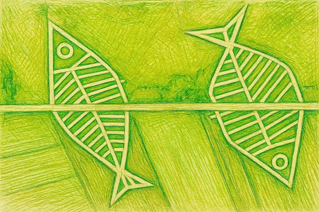 Esta obra, localizada na interseção de dois campos adjacentes à fronteira, inscreve-se na chamada “Land Art”, movimento surgido no final da década de 1960, que se diferencia pelo facto de os artistas usarem a própria paisagem como tela e matéria-prima, modelando-a de forma a criarem intervenções de grande escala, embora efémeras: a própria natureza acaba por destruí-las, recuperando paulatinamente os sulcos e rasgos nela abertos. Este enorme par de peixes, criados a partir de 23 diferentes tipos de plantas semeadas em ambos os lados da fronteira entre a Polónia e a Ucrânia, não sobreviveu muito tempo após ter sido apresentado no verão de 2011. A sua memória é unicamente preservada em fotografias aéreas, filmes e mapas.